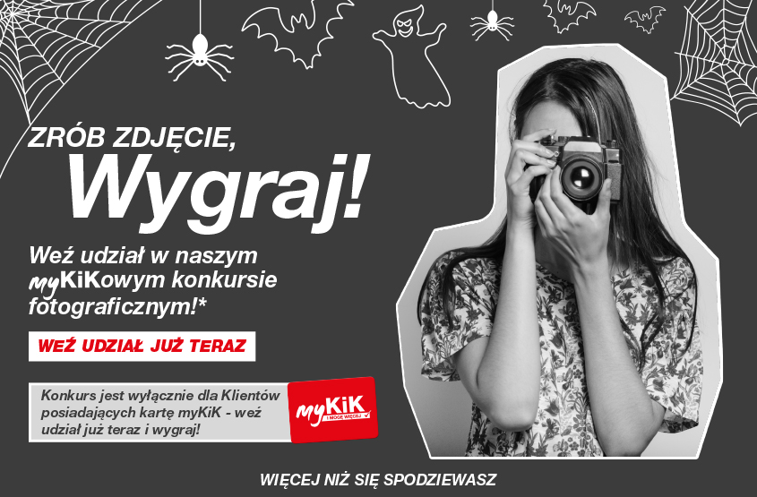 wziąć udział w konkursie, należy przesłać zdjęcie o tematyce „Halloween“ na adres www.firma.kik.pl/mykikkonkurs w okresie od